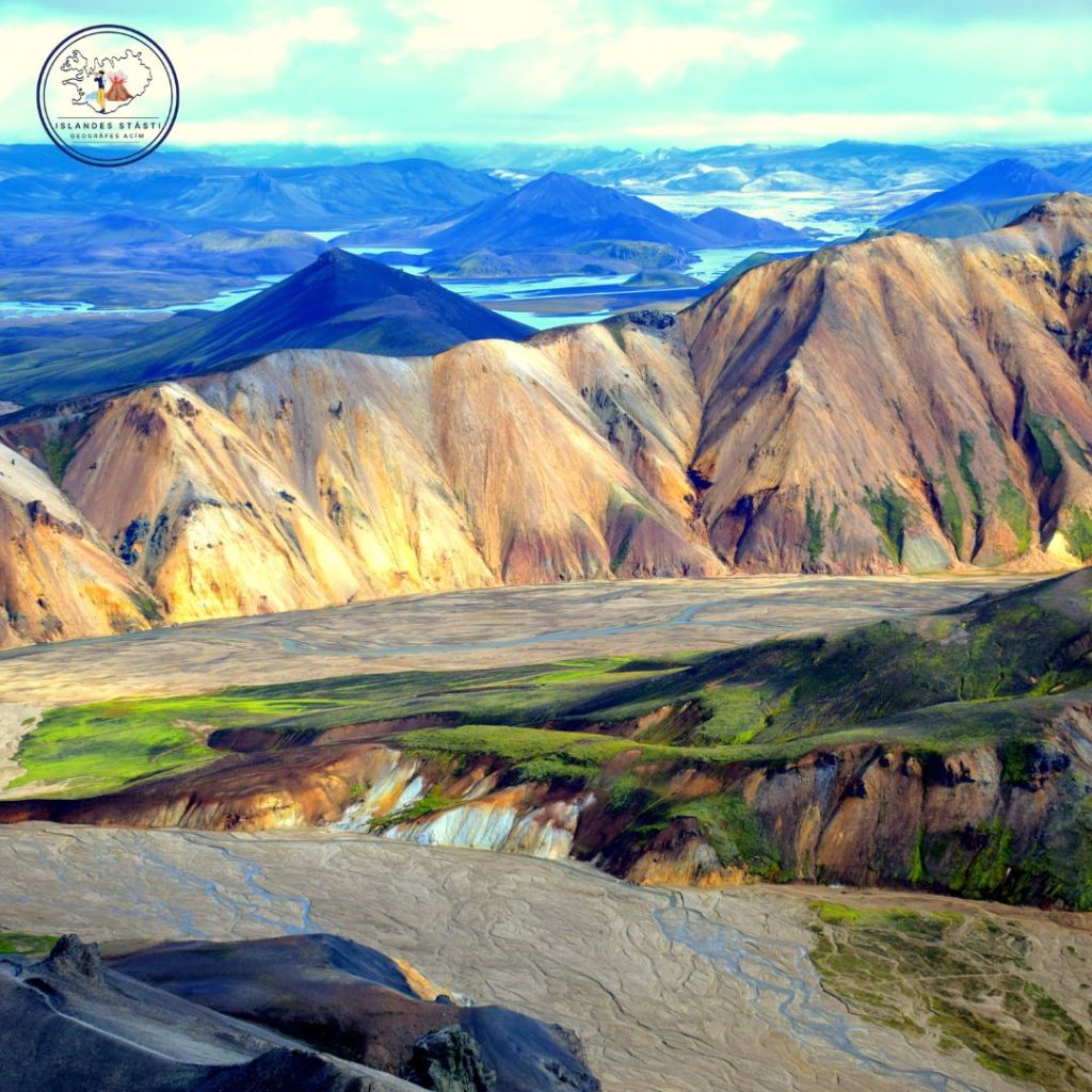 Te atrodas “varavīkšņu kalni”, kurus veido riolīta ieži. Riolītas lavas izlijumi Islandē ir retums. To krāsas ir pārsteidzošas! No Landmannalaugar sākas slavenais piecu dienu pārgājiens jeb “Laugavegur Trail” ~ 56 km garumā.