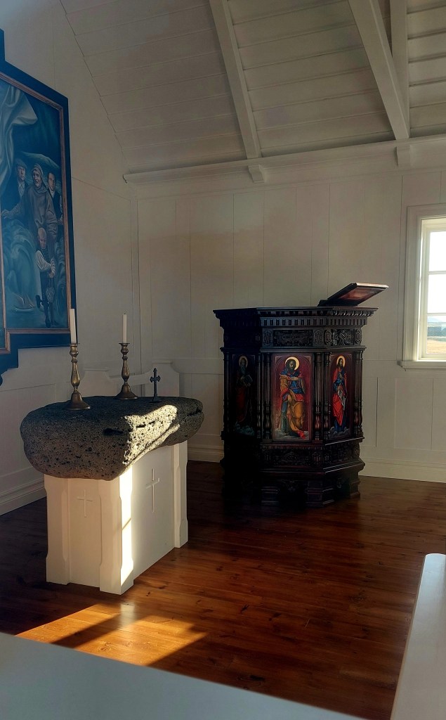 Ceļa malā atrodas arī vienkāršā, bet pievilcīgā ziemeļnieku stilā celtā Minna-Knarrarnes privātā koka baznīca. Tā krāsota melnā krāsā, pastiprinot tās senatnīgo auru un darvas smaržu. Ieskatoties pa logu, redzams tā dabiskā akmens altāris un greznā kancele. Ieeja baznīcā gan ir jāsaskaņo ar tās īpašniekiem.