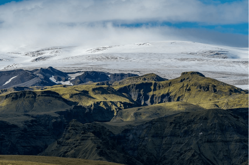 Mīrdāljokutla ledājs. Attēla avots: https://www.south.is/en/place/myrdalsjokull-glacier-and-katla